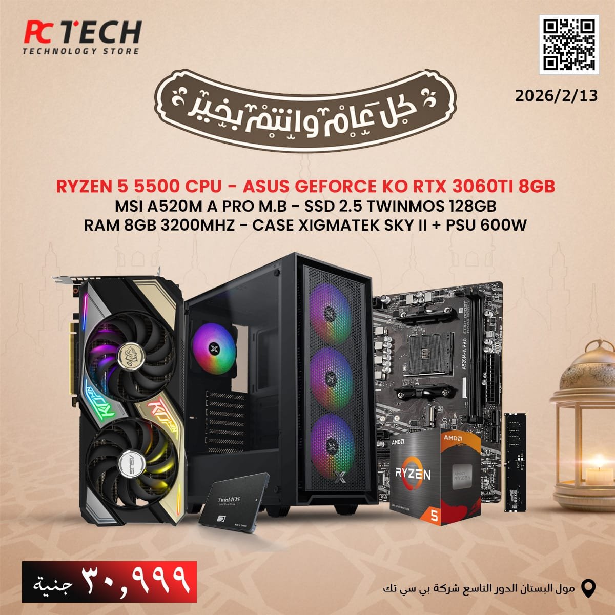 Gaming PC Ryzen 5 5500 – ASUS RTX 3060 Ti, 8GB RAM, 128GB SSD